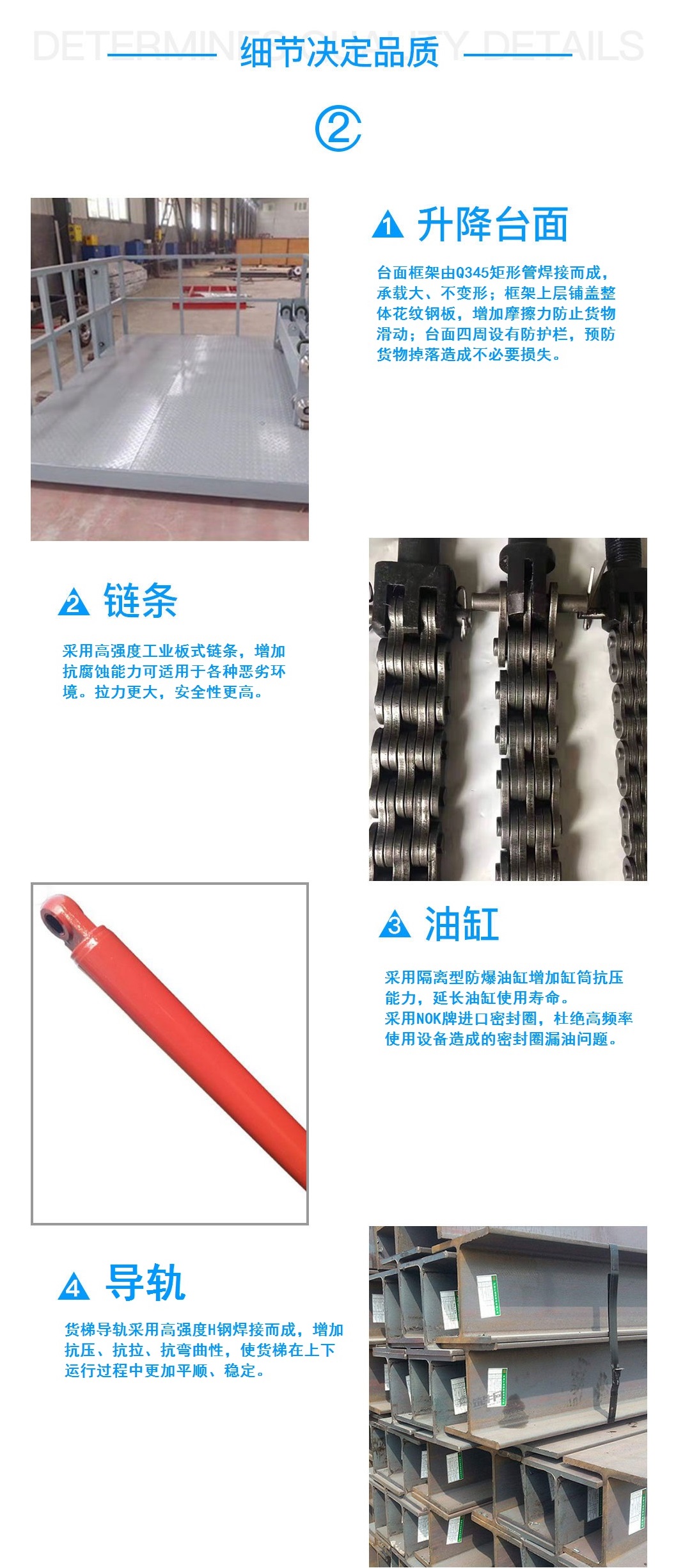 液壓升降貨梯,主要用于樓層間高空貨物運(yùn)輸。載重1-150噸,升高高度1-45米.室內(nèi)、室內(nèi)外均可安裝。導(dǎo)軌式升降貨梯采用旁置油缸,運(yùn)行平穩(wěn)、噪音低、維修方便、使用壽命較長(zhǎng);停電時(shí),可使用手動(dòng)應(yīng)急下降,安全、方便、快捷、實(shí)用;地坑深度一般為0-30cm,頂層高度不受限制
