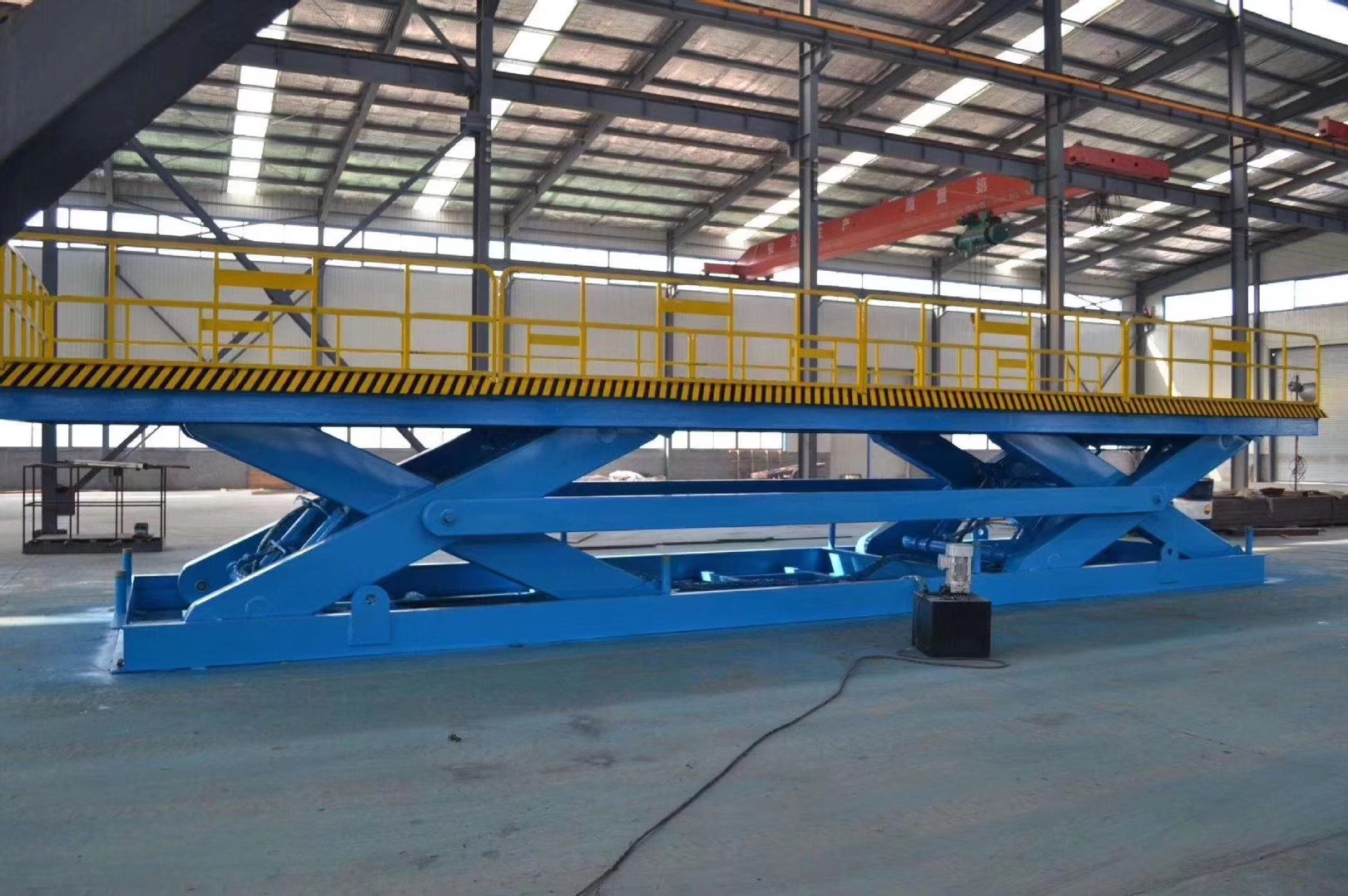 升降動(dòng)力分為220V或380V電源,特殊環(huán)境也可采用防爆泵站及防爆電器。載重1—200噸。采用意大利和國(guó)產(chǎn)液壓泵站,臺(tái)面使花紋鋼板。它使高空作業(yè)效率更高,安全更保障。